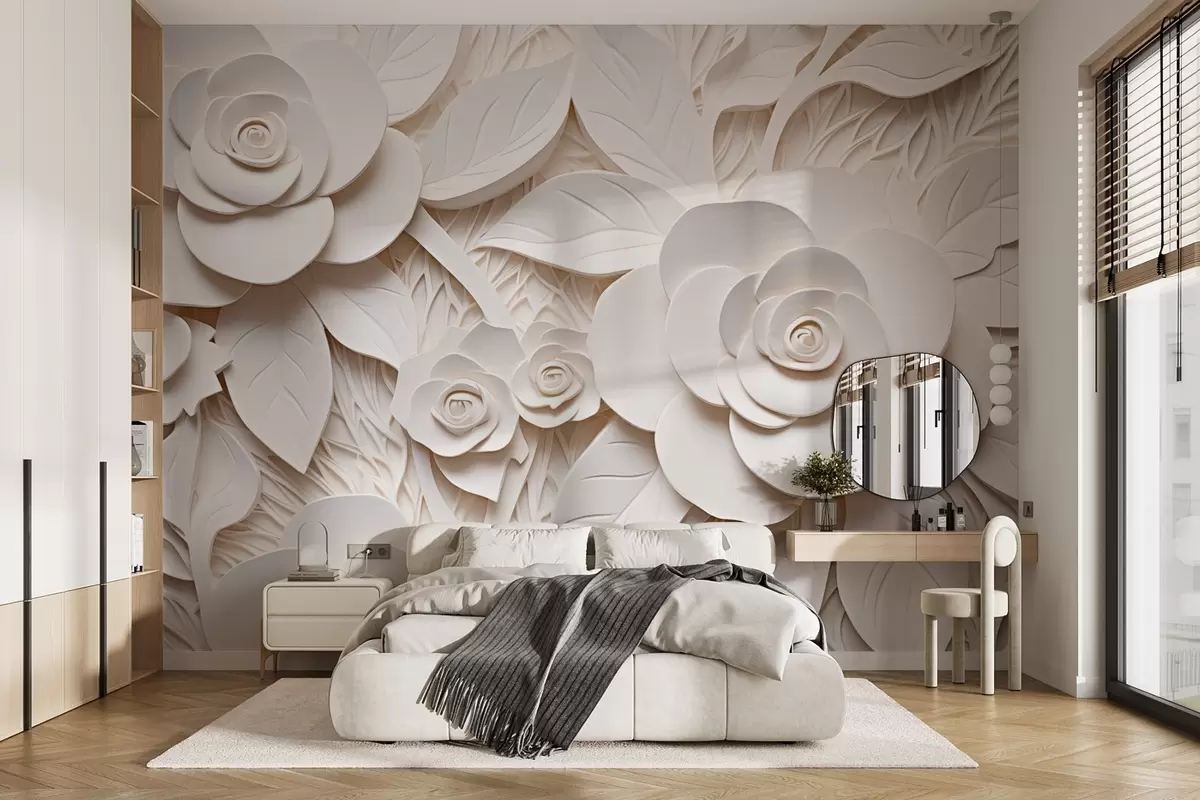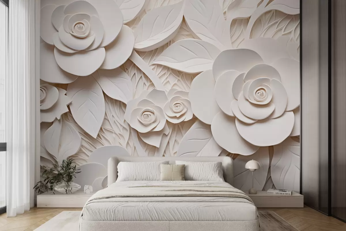 Тапете за зид 3Д беле волуметријске руже бр. w08963