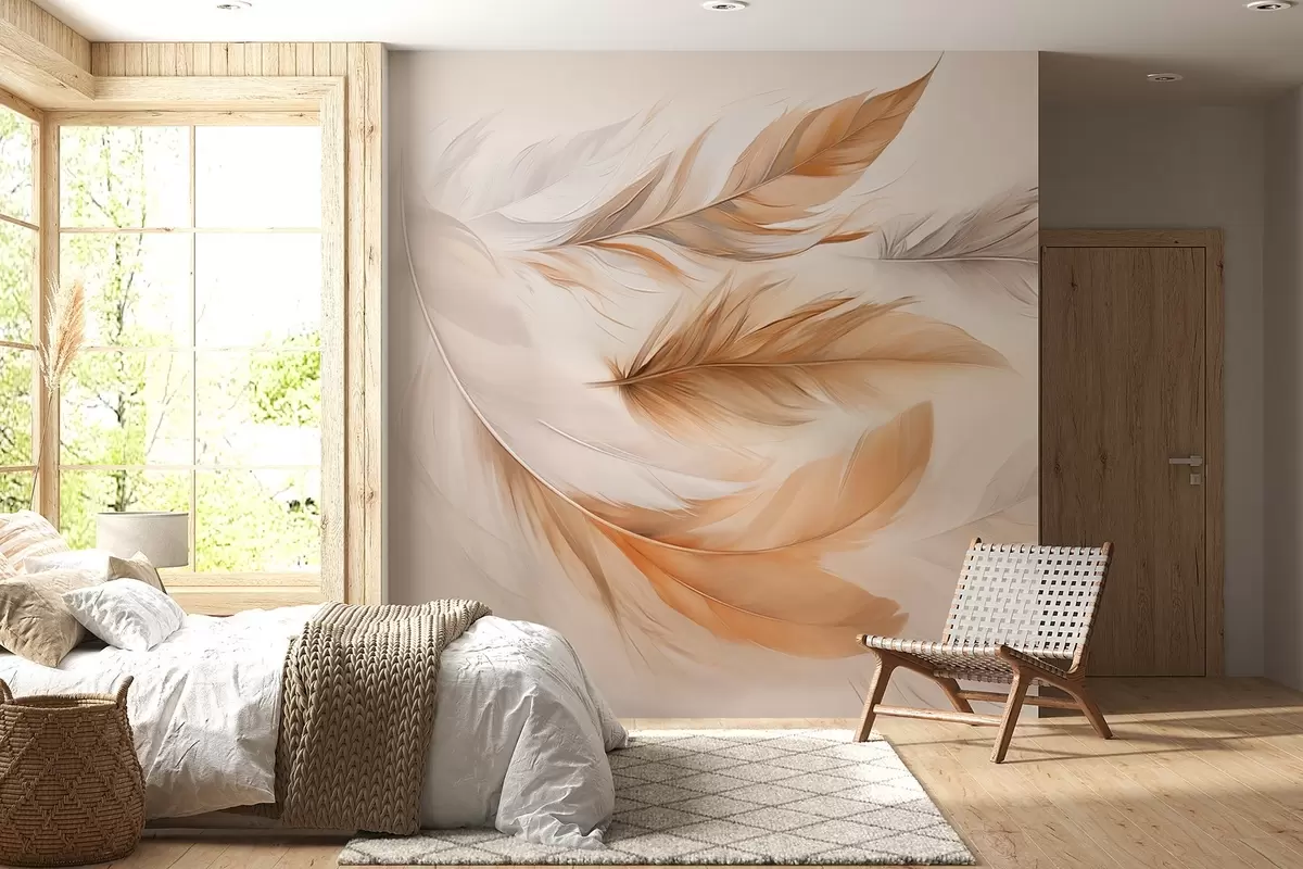 Тапете за зид Плутајуће прозрачно смеђе-сиво перје бр. w08968