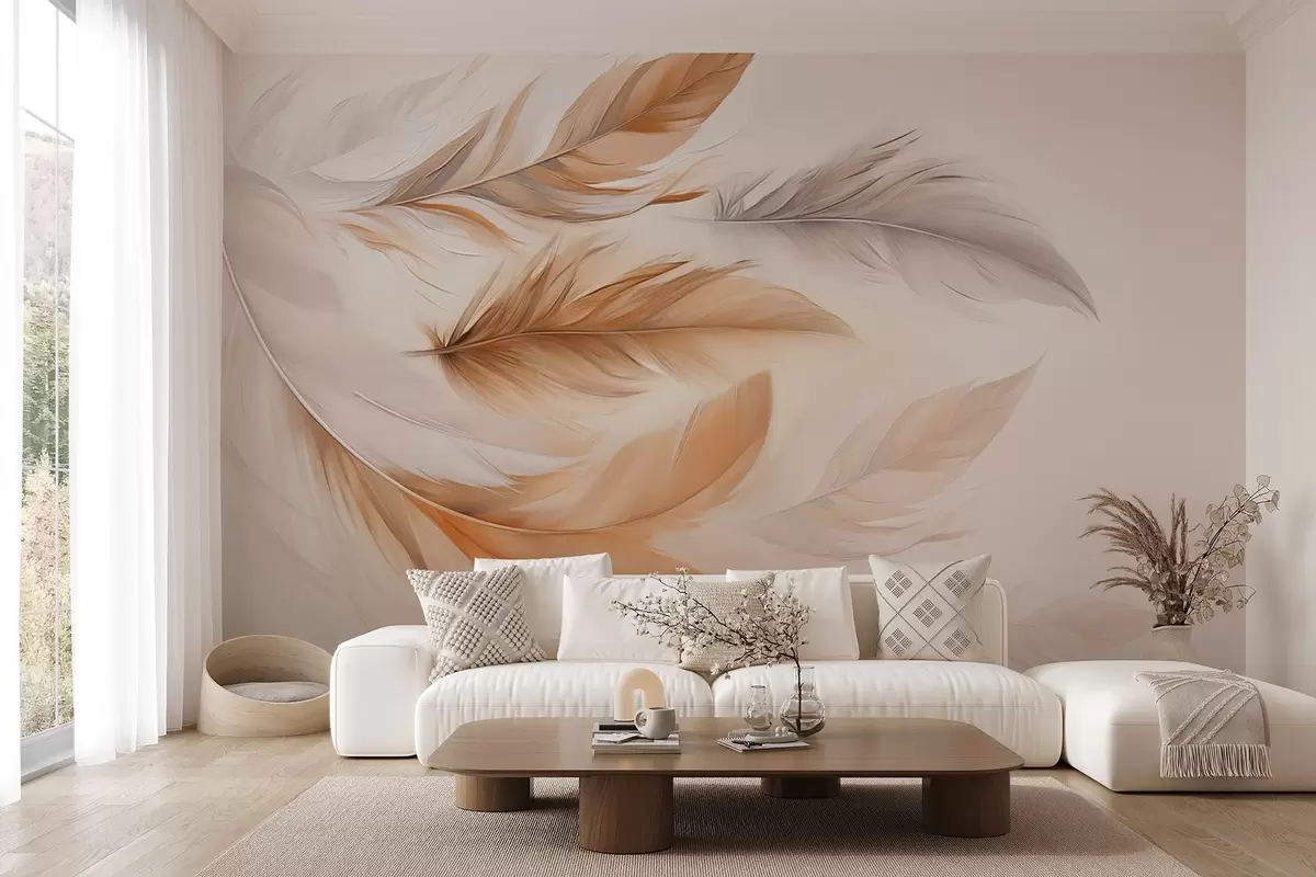 Тапете за зид Плутајуће прозрачно смеђе-сиво перје бр. w08968