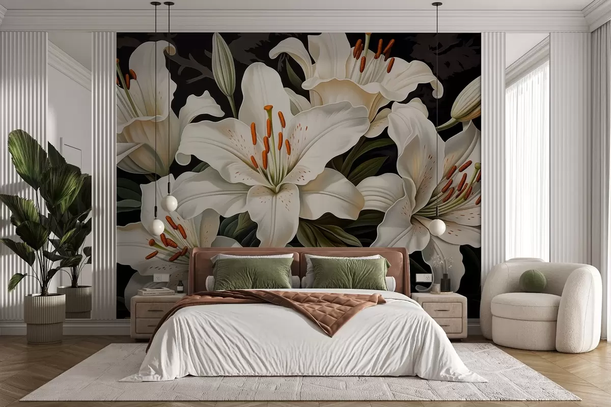 Тапете за зид Елегантно велико бело цвеће на тамној позадини бр. w08983