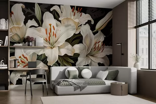 Тапете за зид Елегантно велико бело цвеће на тамној позадини бр. w08983