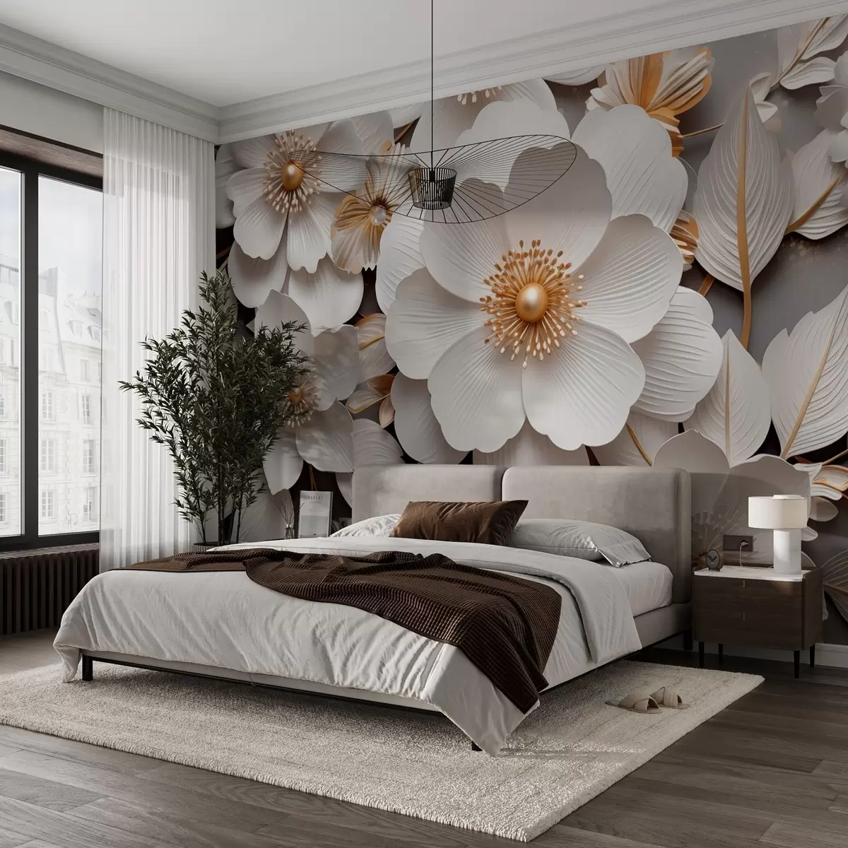 Тапете за зид 3Д цвеће у оригами стилу у жуто-сивим тоновима бр. w08993
