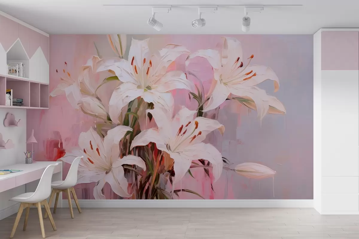 Тапете за зид Љиљани у живим бојама у сликарском стилу бр. w08996