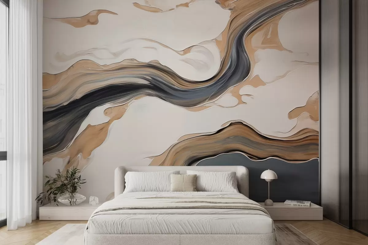 Тапете за зид Смеђе-сиве пруге у облику таласа бр. w09001