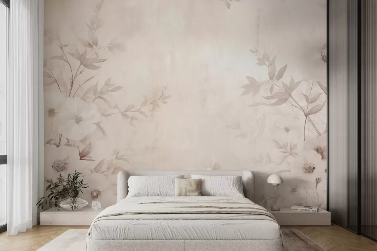 Тапете за зид Цвеће са листовима у неутралним светлим тоновима у стилу акварела бр. w09040