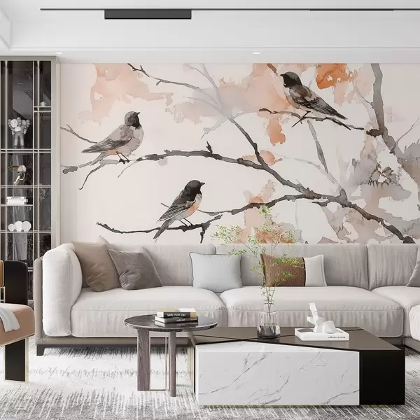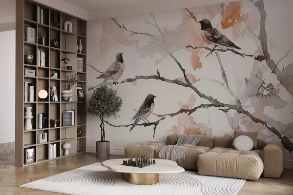 Тапете за зид Птице на гранама дрвећа у стилу акварела бр. w09064v2
