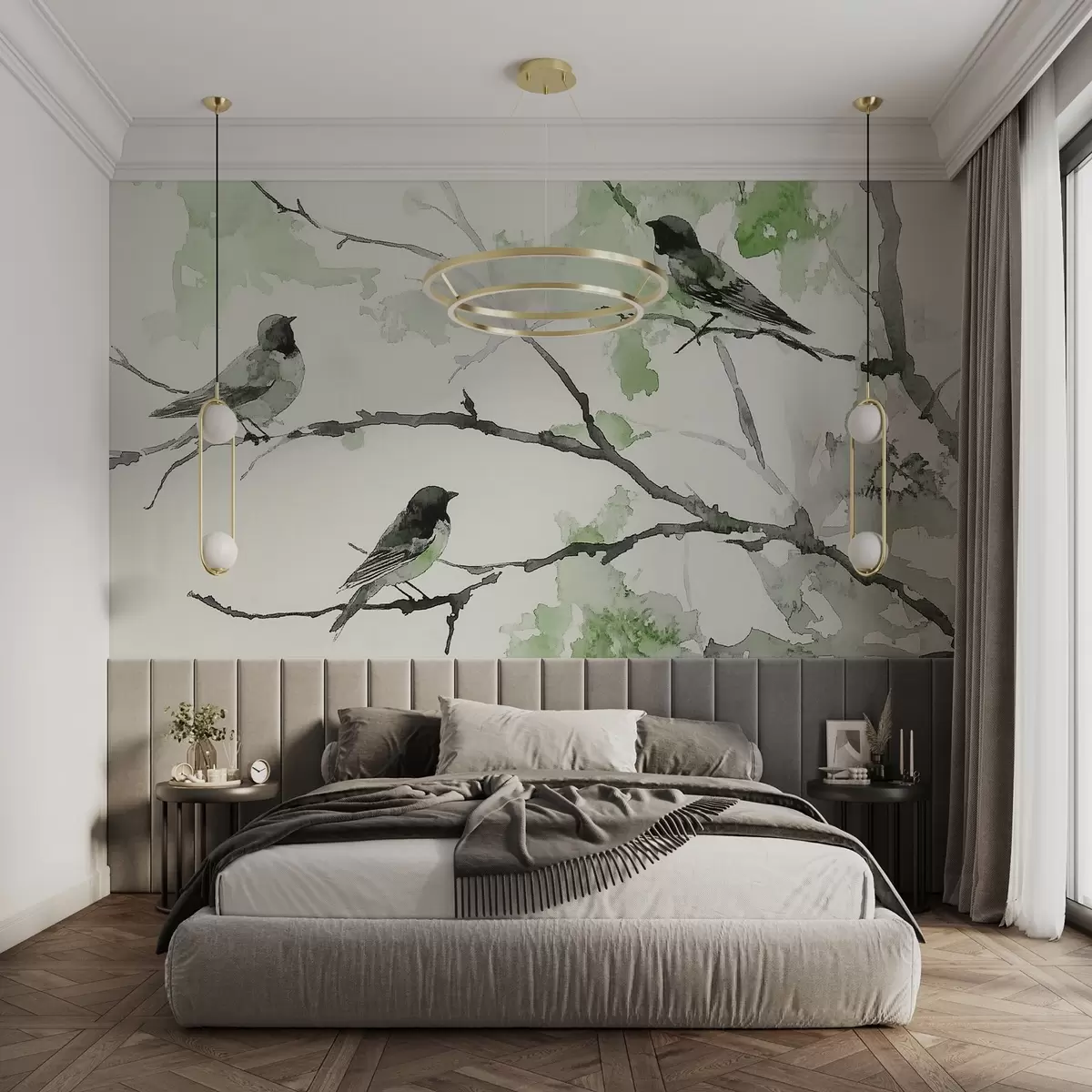 Тапете за зид Птице на гранама дрвећа у стилу акварела бр. w09064v3