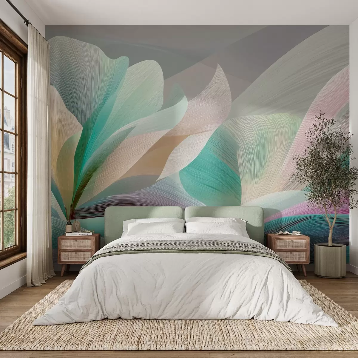 Тапете за зид Елегантна апстракција са глатким кривинама које подсећају на цвет и таласе бр. w09075