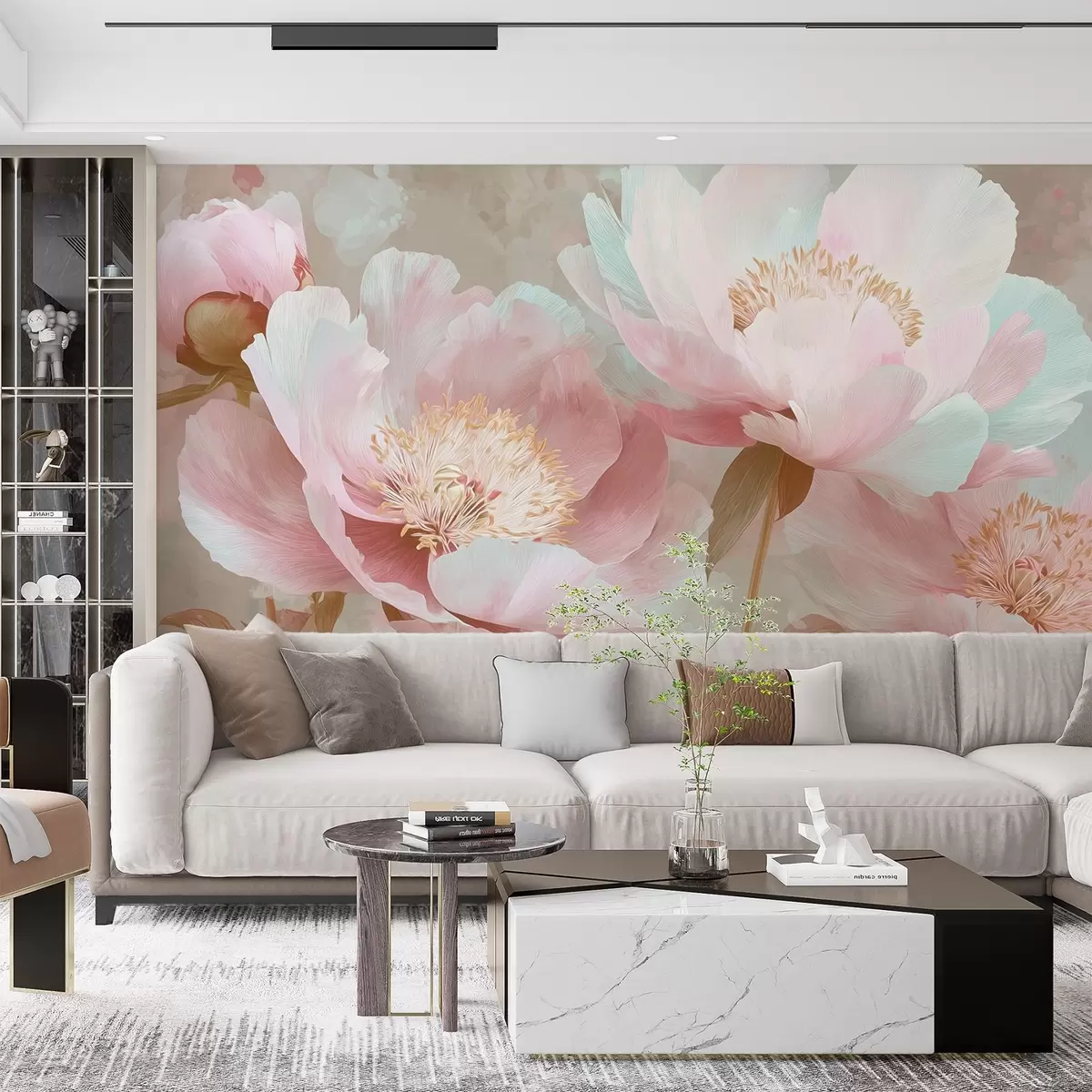 Тапете за зид Нежни божури у розе и беж тоновима бр. w09087v1