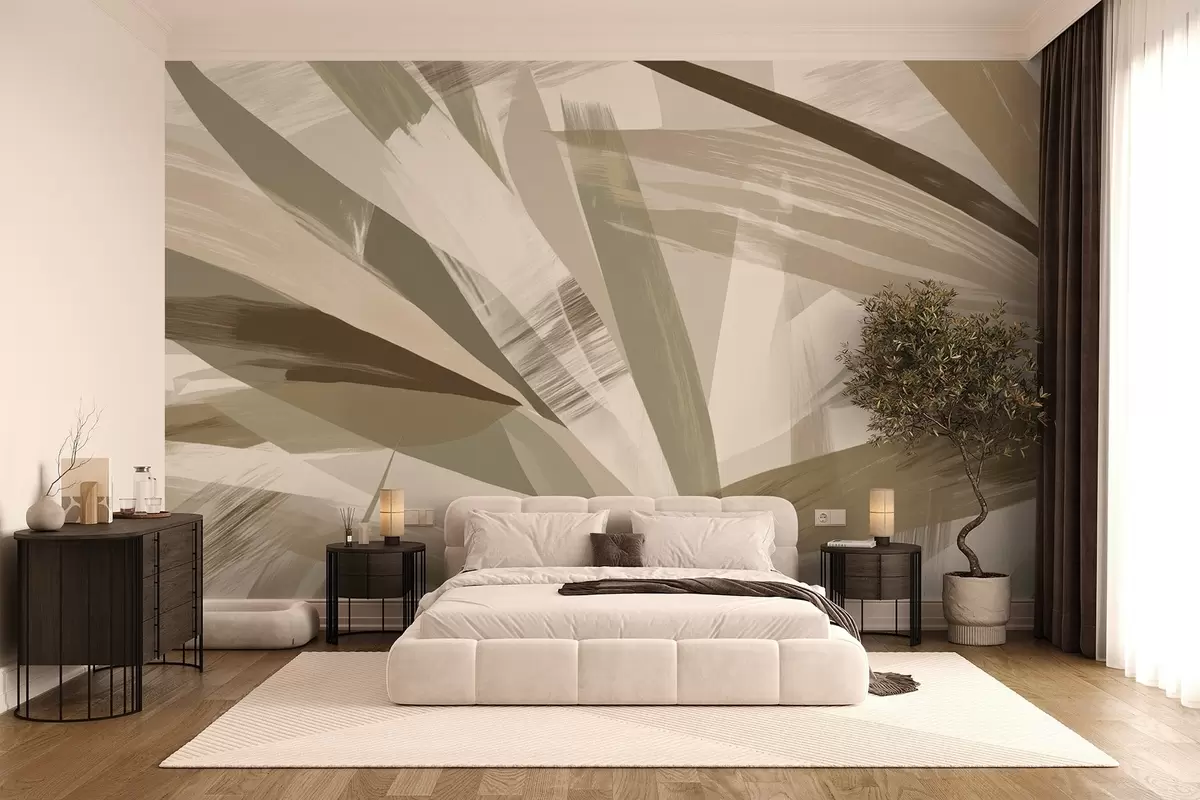 Тапете за зид Апстрактни листови у зеленим и беж тоновима бр. w09091