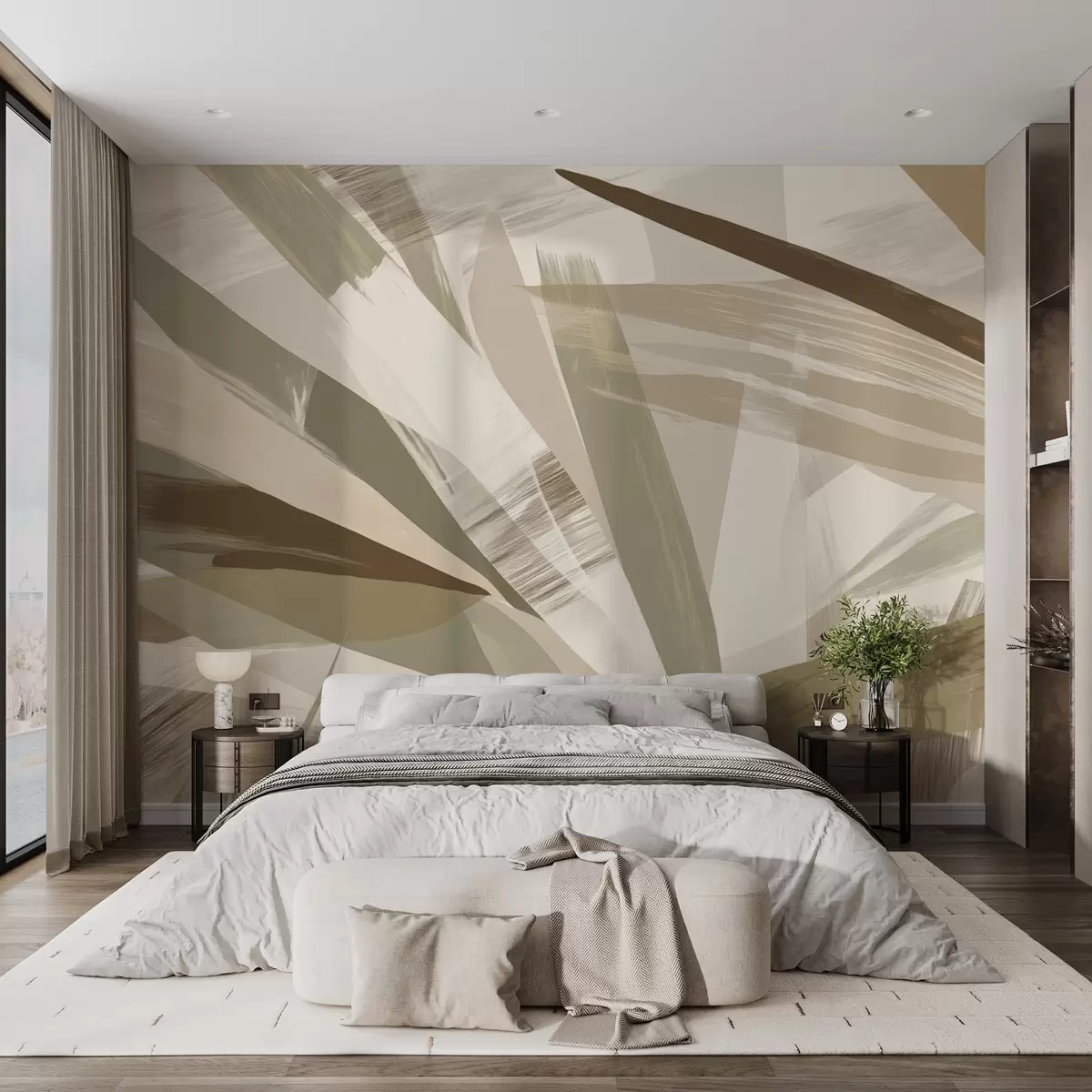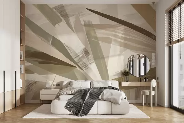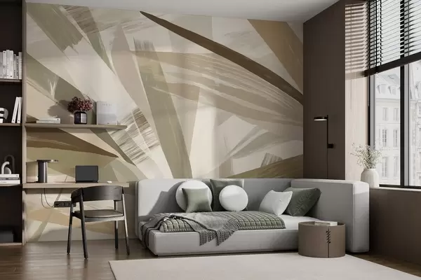 Тапете за зид Апстрактни листови у зеленим и беж тоновима бр. w09091