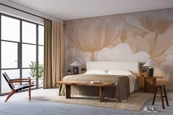 Тапете за зид Беж макови у светлим тоновима бр. w09099