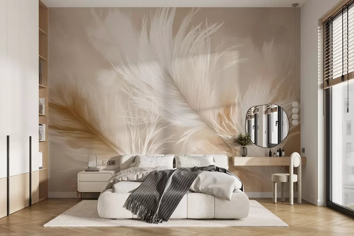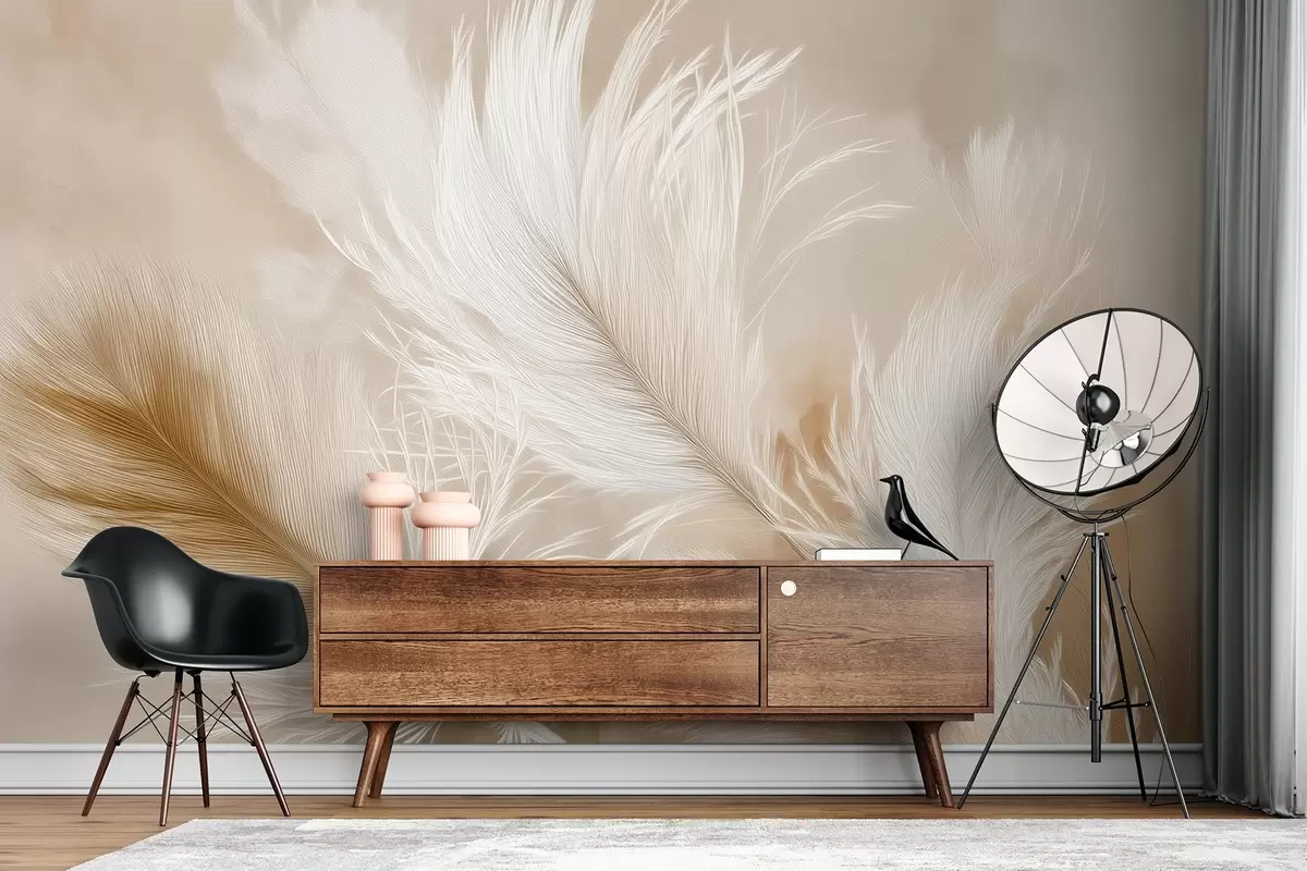 Тапете за зид Летеће прозрачно перје на беж позадини бр. w09102
