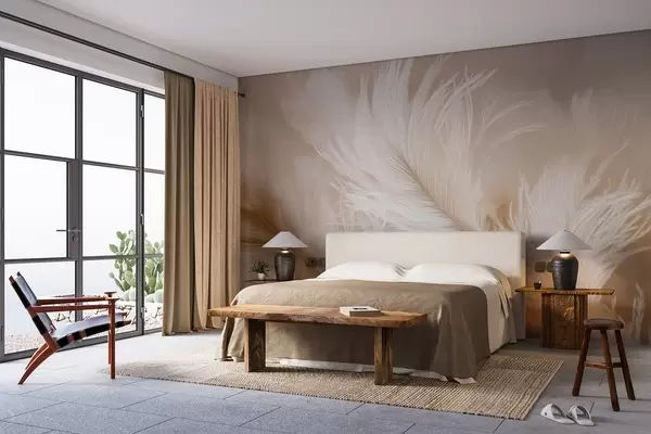 Тапете за зид Летеће прозрачно перје на беж позадини бр. w09102
