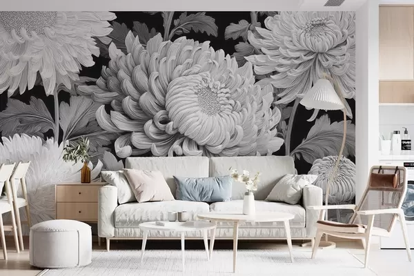 Тапете за зид Црно-беле велике орхидеје са листовима бр. w09125v1