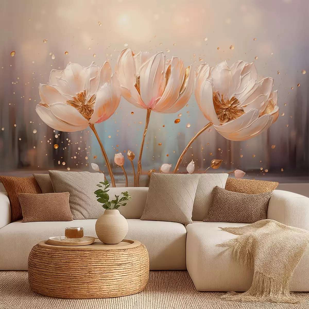 Тапете за зид Нежно волуминозно цвеће при изласку сунца бр. w09148