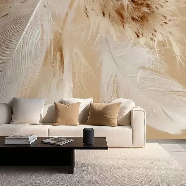 Тапете за зид Светло перје у топлим беж и белим тоновима бр. w09153