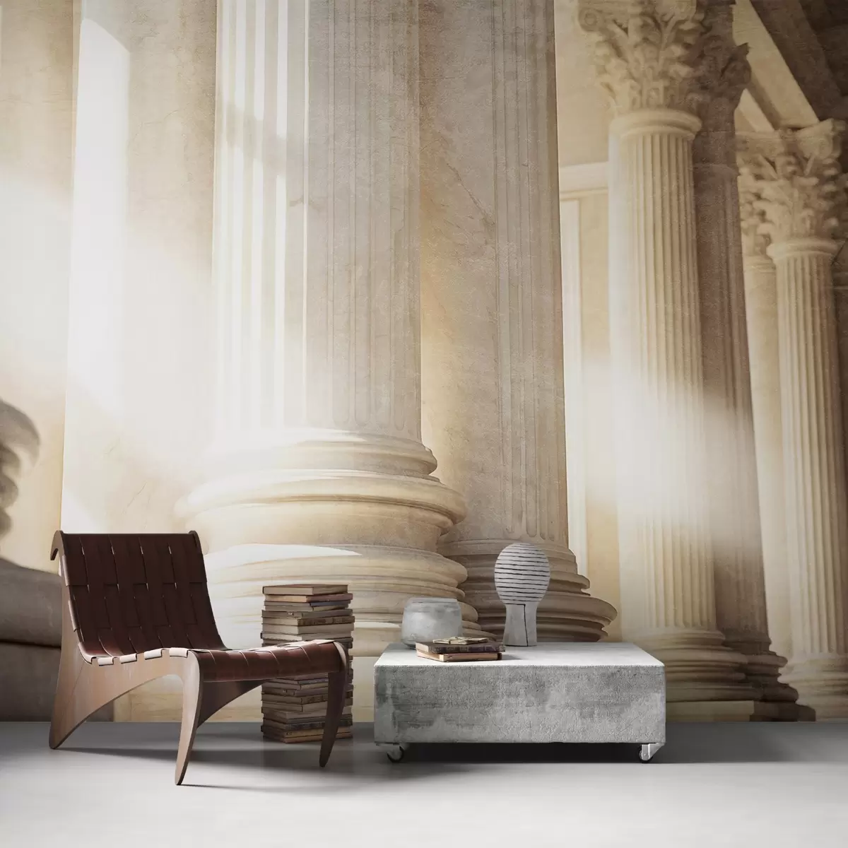 Тапете за зид Стубови, класична архитектура, елегантан дизајн, текстурирана симетрична композиција, неутрална палета боја бр. w09209