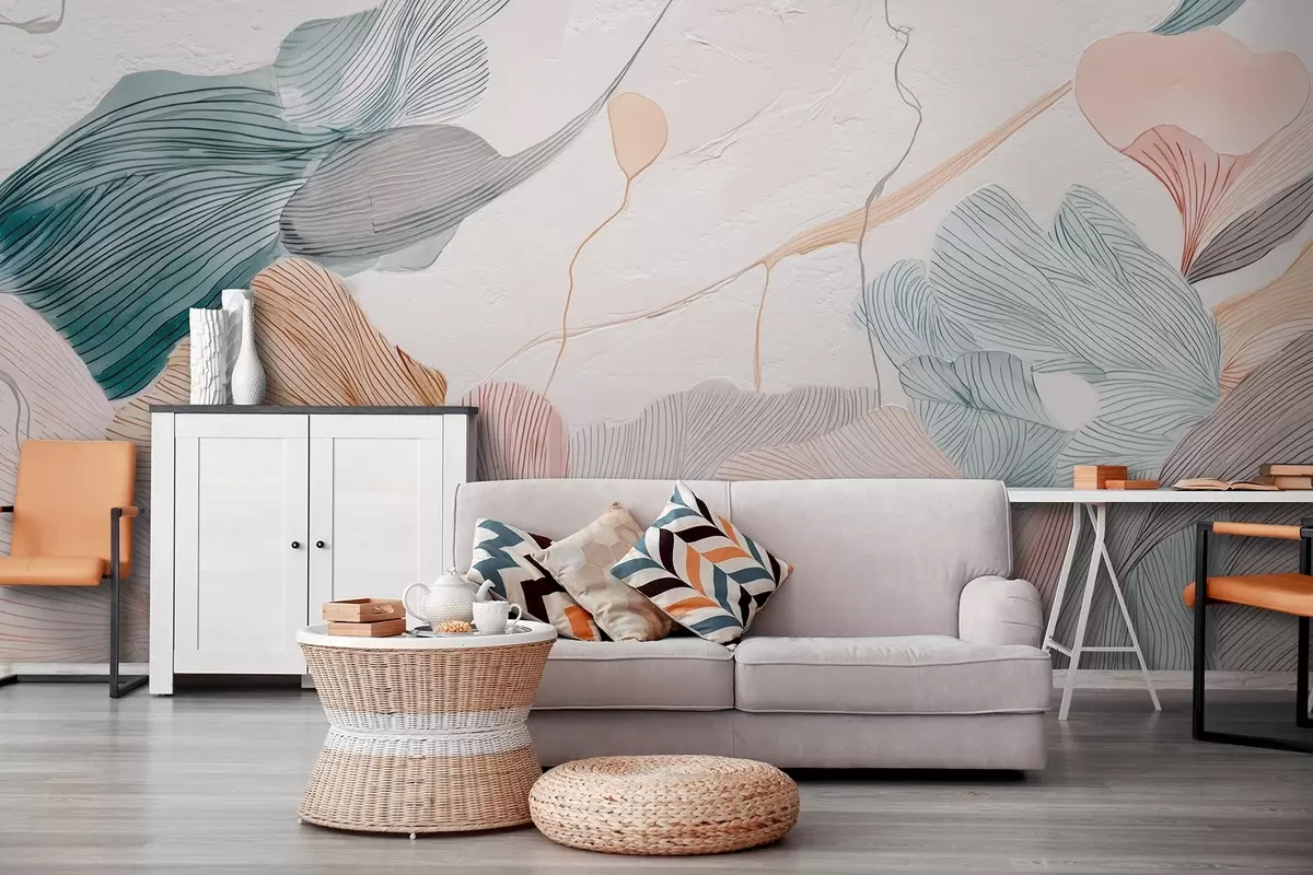 Тапете за зид Апстрактни графички листови у топлим пастелним тоновима бр. w09222