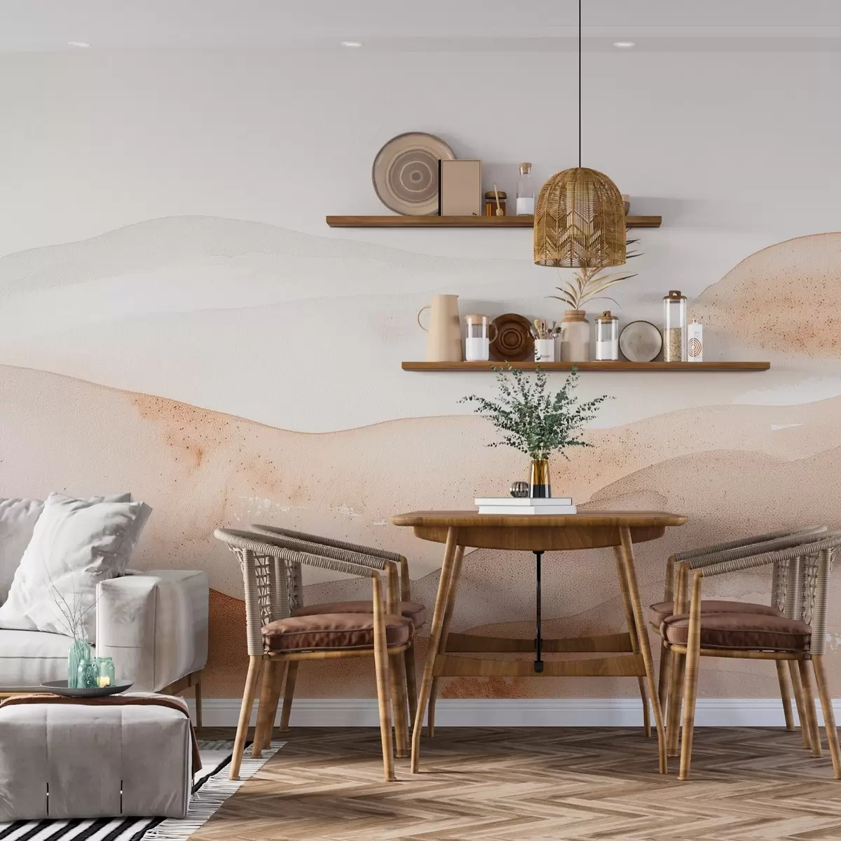 Тапете за зид Планине са ефектом брда у топлим тоновима акварела бр. w09223v1