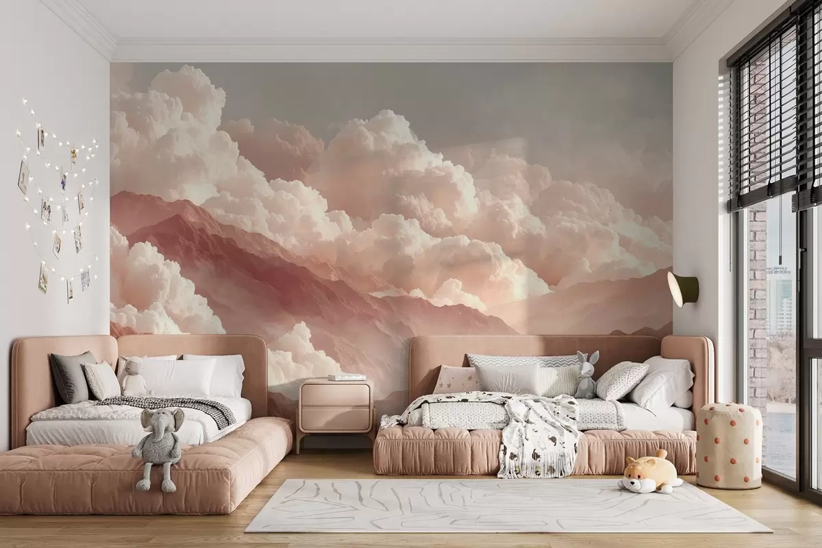 Тапете за зид Топао излазак сунца над планинама са пахуљастим облацима бр. w09226