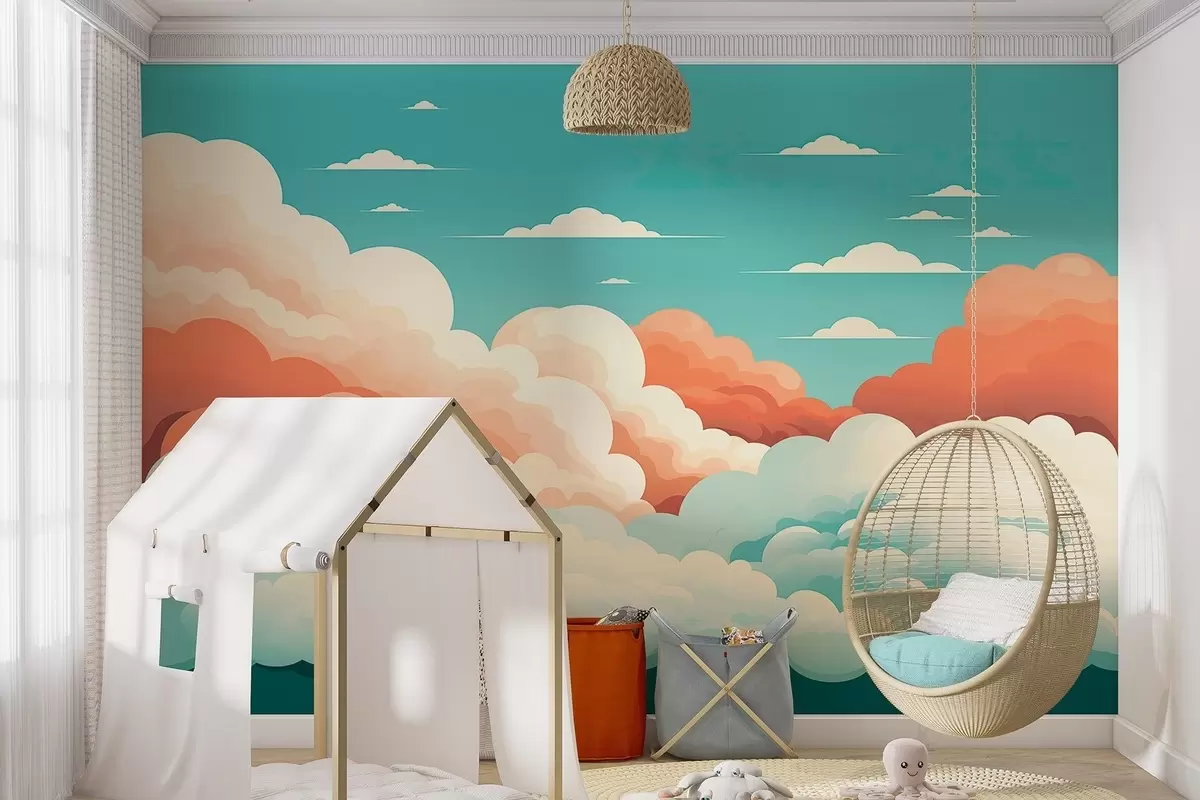Тапете за зид Хировити облаци у цртаном стилу под плавим небом бр. w09246