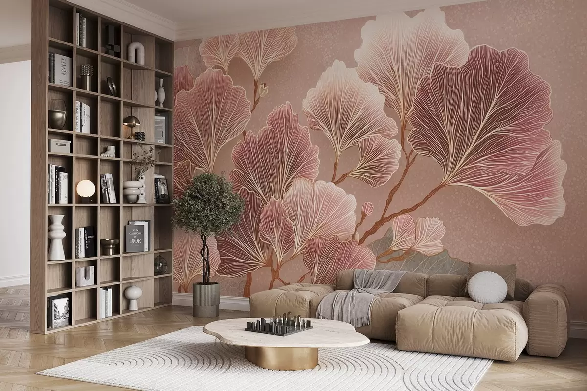 Тапете за зид Грана лишћа у ружичастим и љубичастим нијансама бр. w09249
