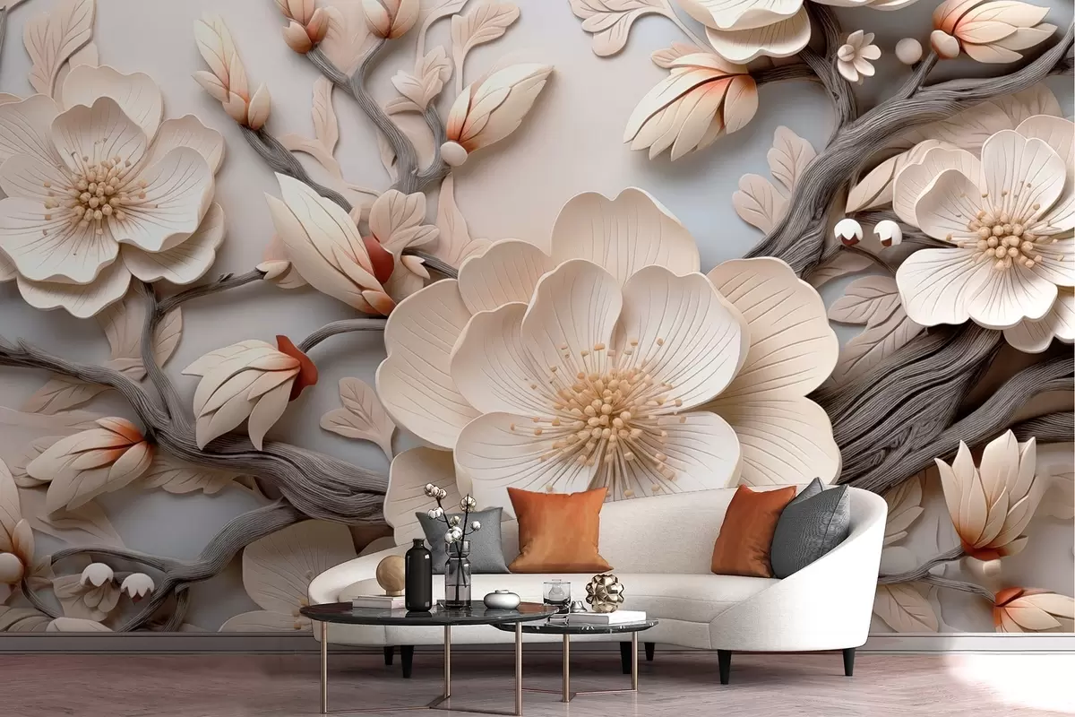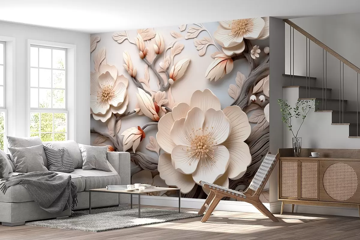 Тапете за зид Волуметријско цвеће и гране у светлим тоновима бр. w09272