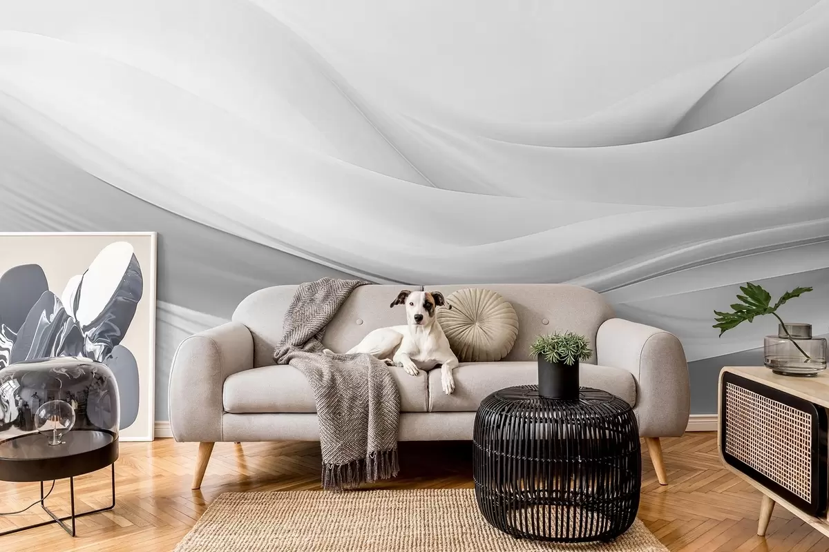 Тапете за зид Сиви таласи од тканине у минималистичком апстрактном стилу бр. w09279v1