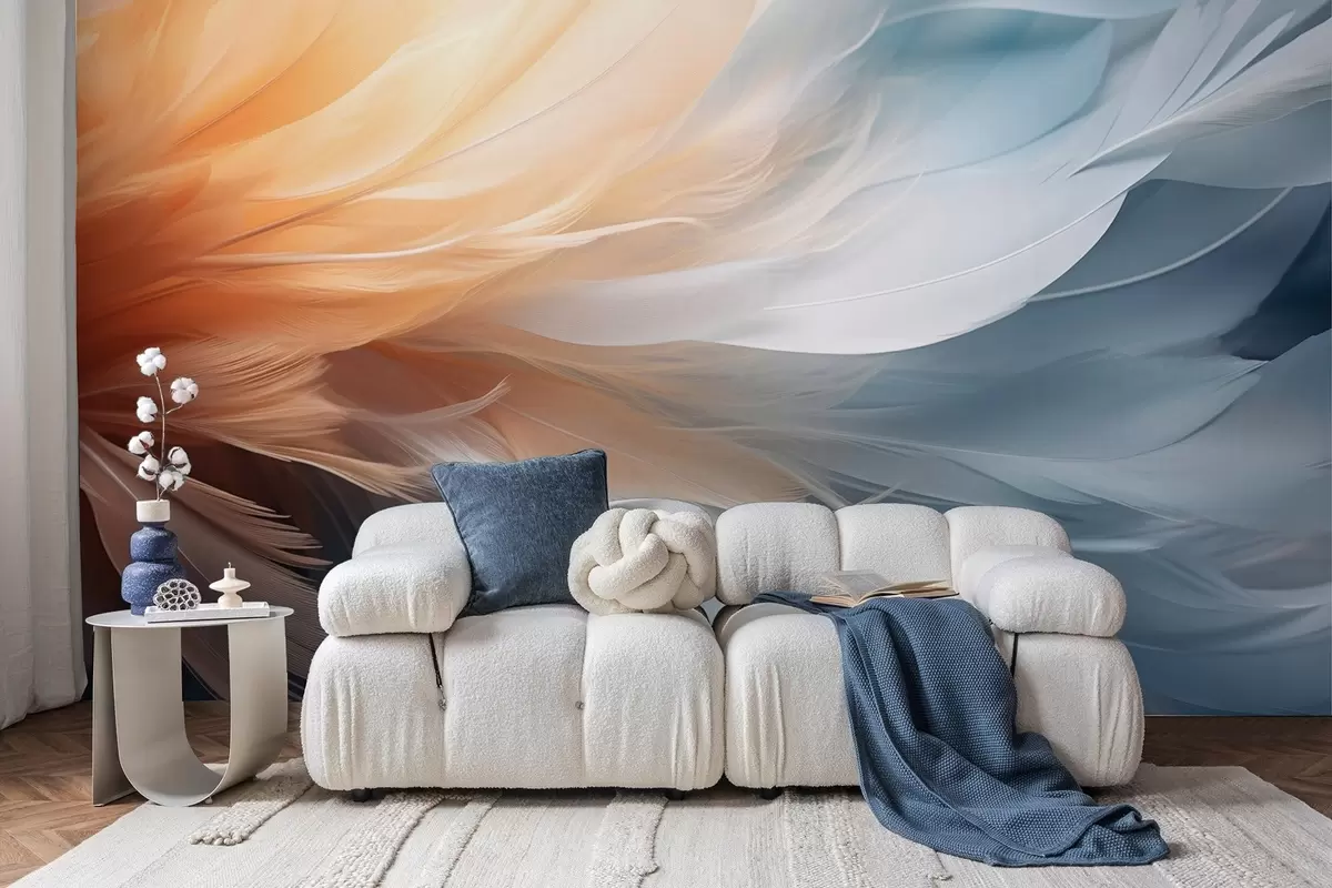 Тапете за зид Нежно перје у наранџастим и плавим градијентним тоновима бр. w09282