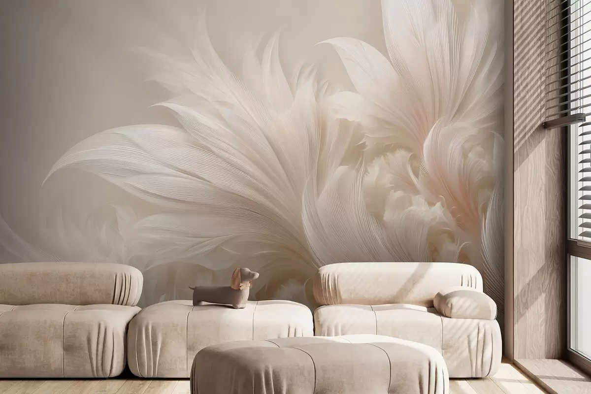 Тапете за зид Бестежинско перје у нијансама ваниле креме бр. w09302