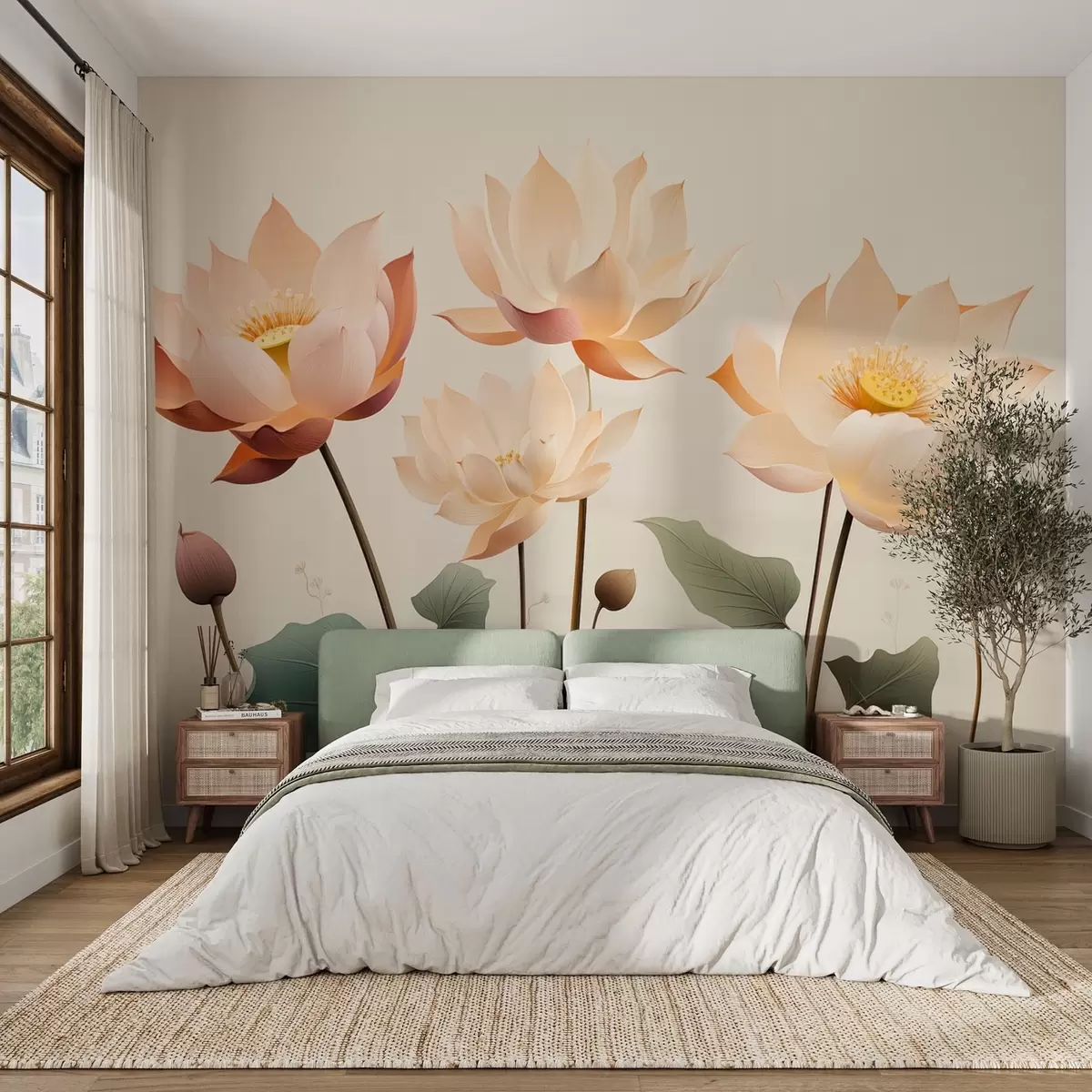 Тапете за зид Елегантни лотосови цветови у нежној пастелној палети бр. w09306