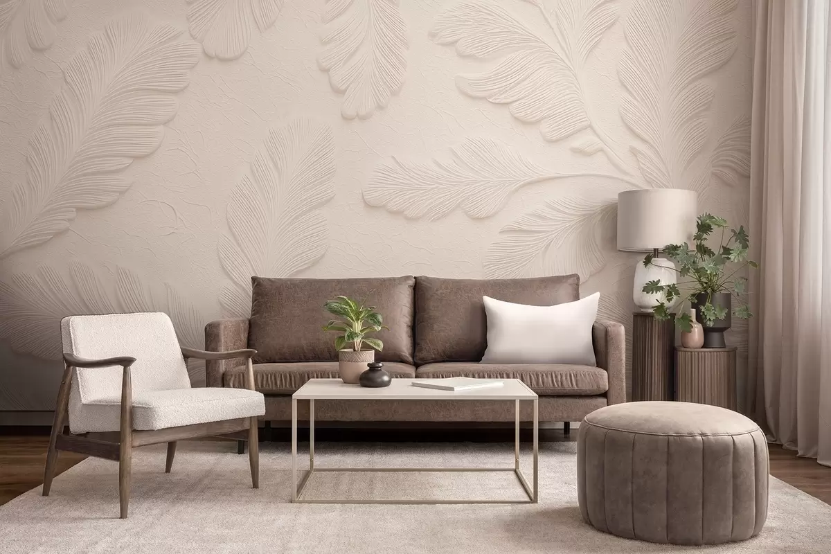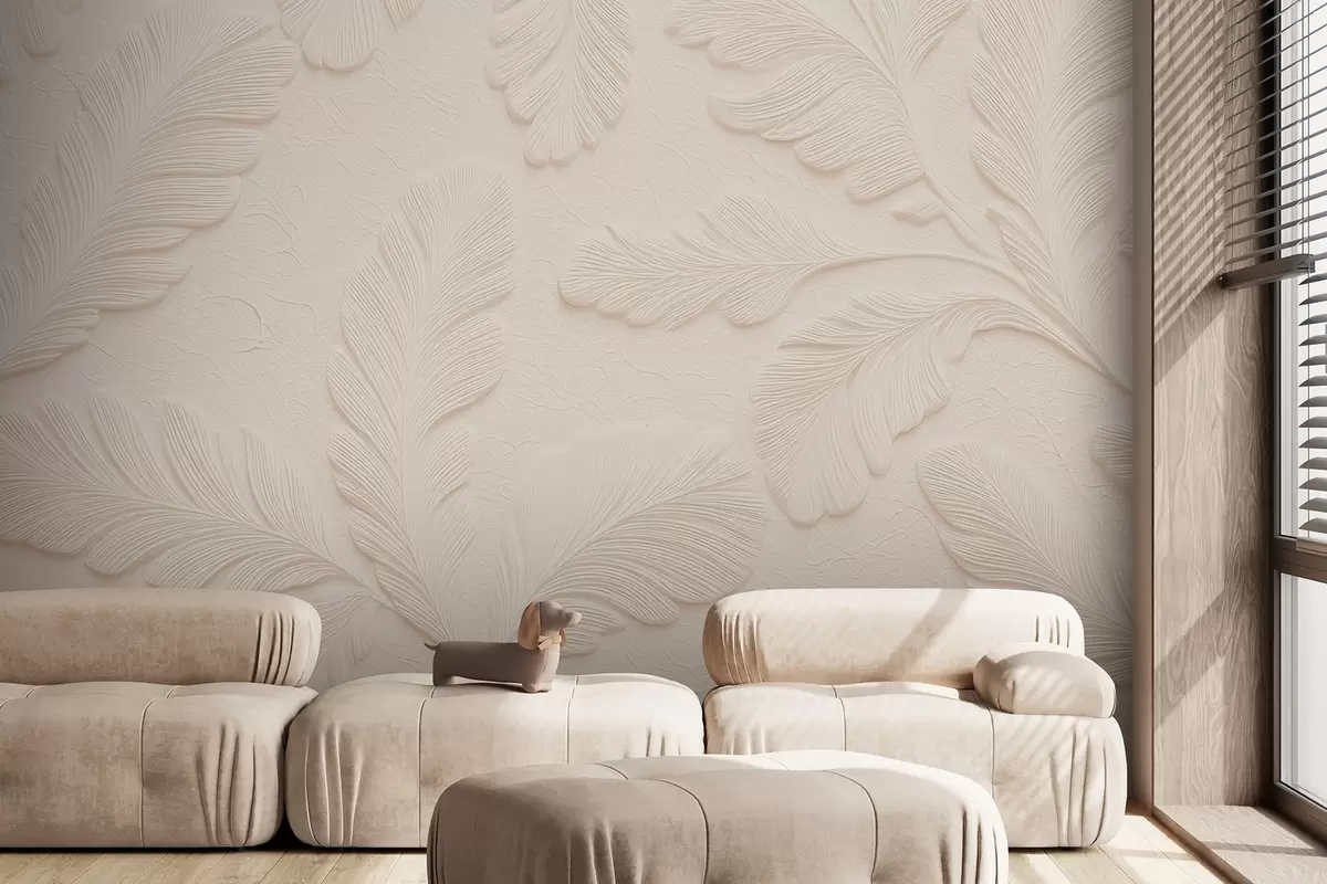 Тапете за зид Рељефно лишће на светлој позадини са ефектом напукнућа бр. w09309