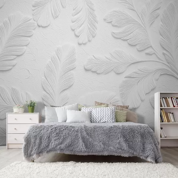Тапете за зид Рељефно лишће у сивој боји са ефектом испуцале текстуре бр. w09309v1