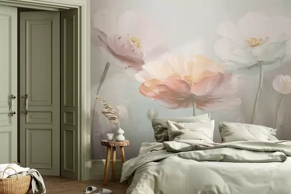 Тапете за зид Волуметријски пастелни макови у стилу уљаног сликарства бр. w09310v1