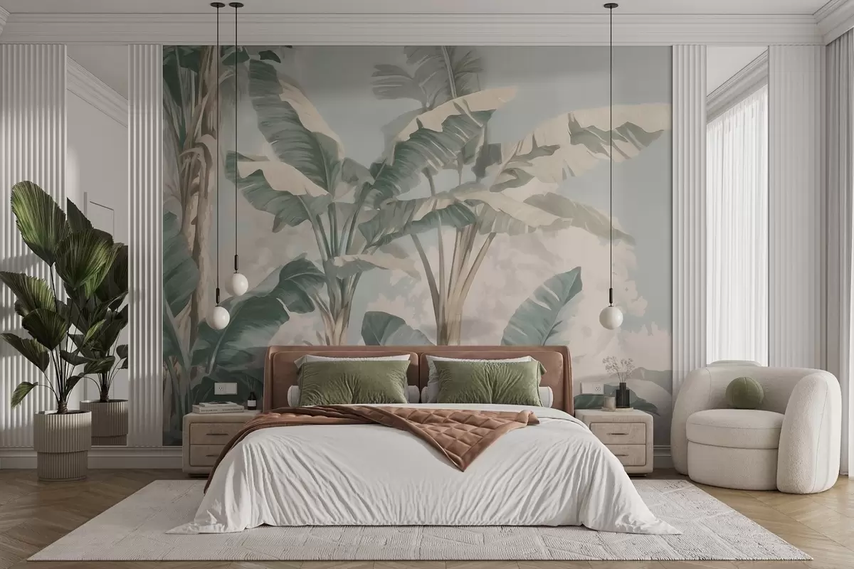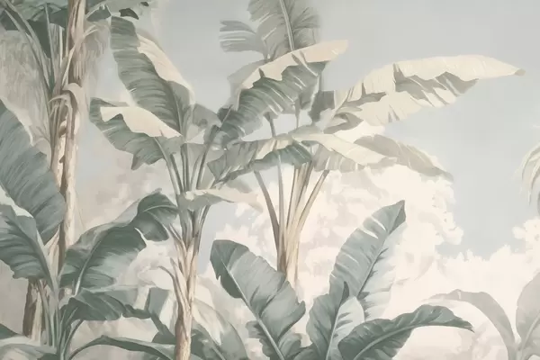 Тапете за зид Тропски листови банане у меким пастелним тоновима бр. w09311