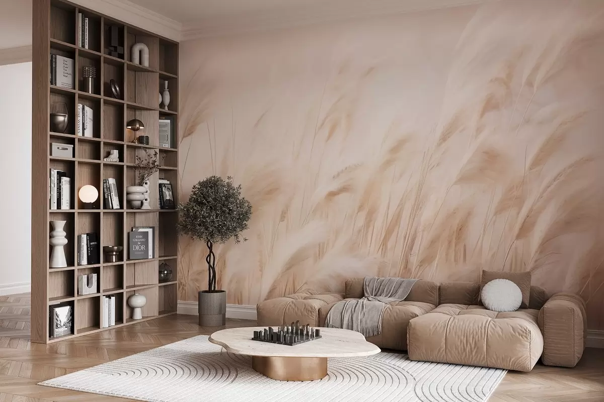 Тапете за зид Нежно њихање пампаса у меким кремастим и беж тоновима бр. w09330