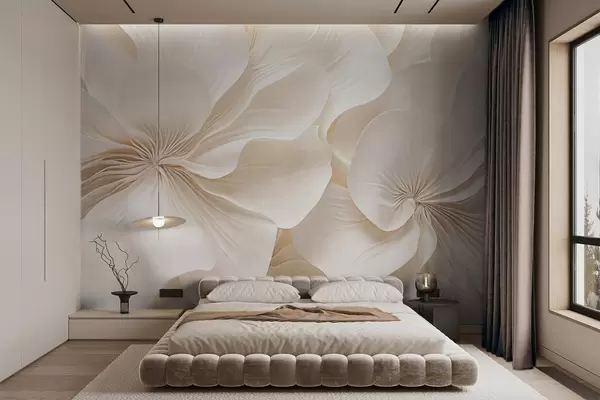 Тапете за зид Крупни план кремасто текстурираног цвећа са нежним, лепршавим латицама, стварајући мекан, елегантан и текстуриран цветни аранжман бр. w09346