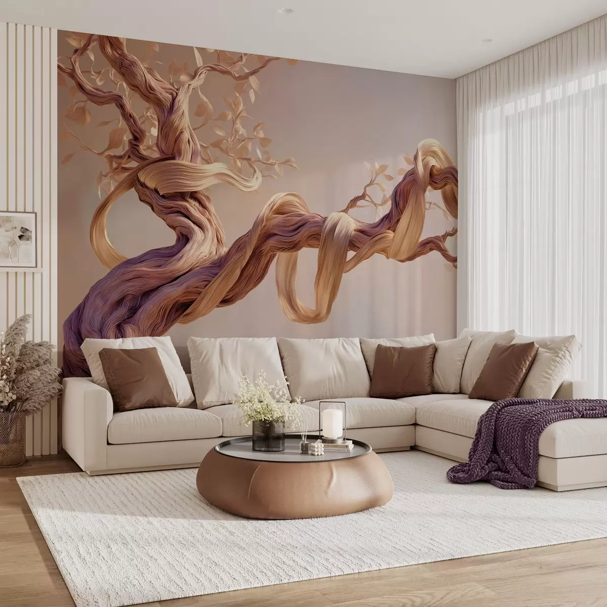 Тапете за зид Увијено дебло дрвета са украсним листовима бр. w09360