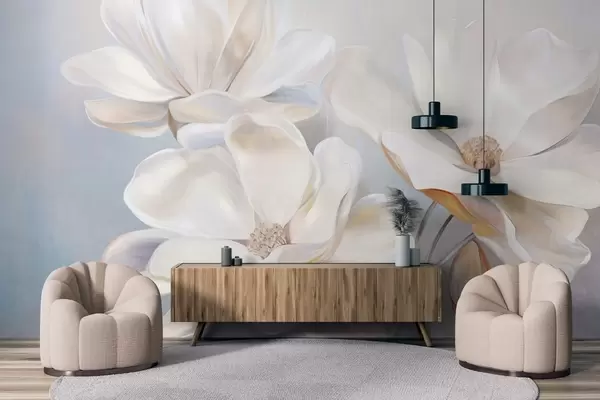 Тапете за зид Бели фантастични цветови магнолије са нежним текстурираним латицама, мека, апстрактна позадина бр. w09373