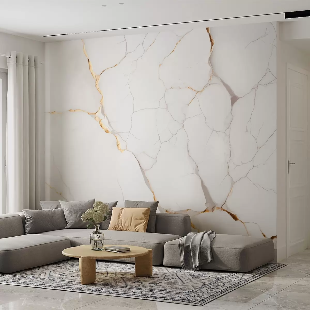 Тапете за зид Имитација мермера са финим пукотинама и жутим жилама бр. w09390