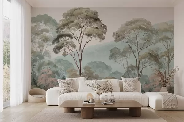 Тапете за зид Магловито јутро у шуми у стилу акварела бр. w09405