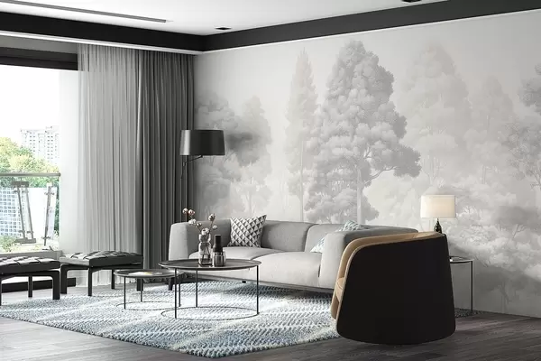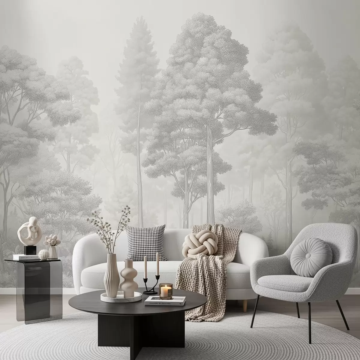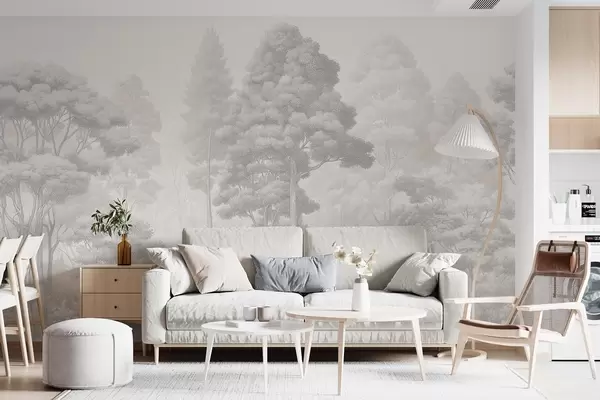 Тапете за зид Уметнички шумски пејзаж у техници црно-белог графичког шрафирања бр. w09411