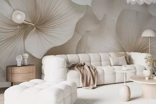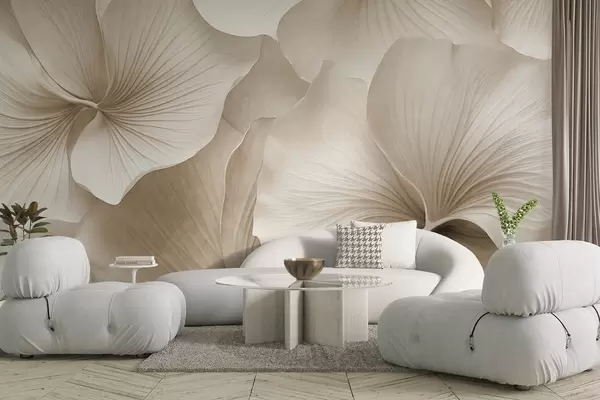 Тапете за зид Бели и беж листови гинка, мека текстура, апстрактна цветна позадина, минималистички модерни стил бр. w09421v1