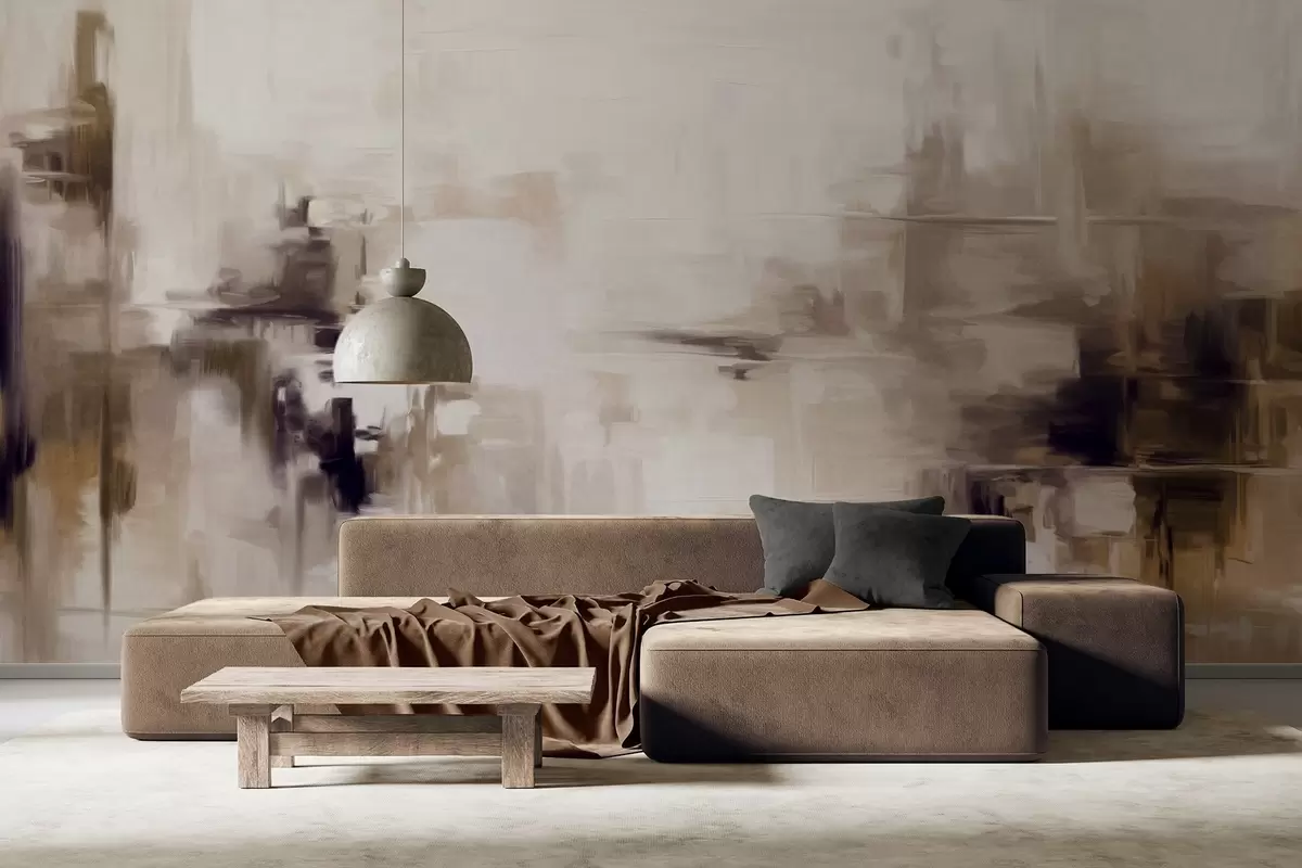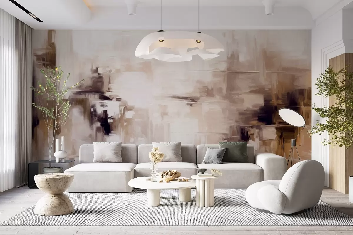 Тапете за зид Апстрактна текстурирана имитација пејзажног сликарства са смеђим и белим потезима четкице, модерни стил бр. w09422v1