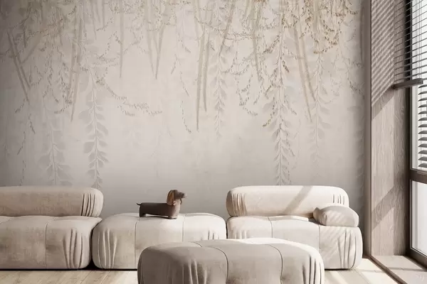 Тапете за зид Лагано висеће лишће и гране у беж тоновима бр. w09433