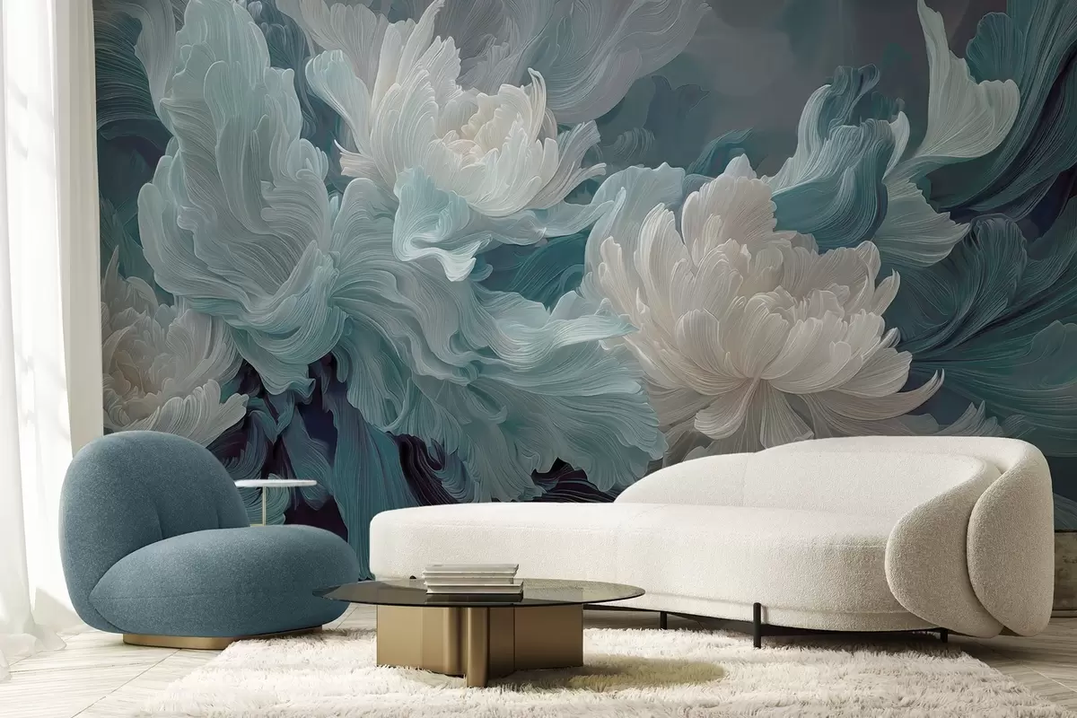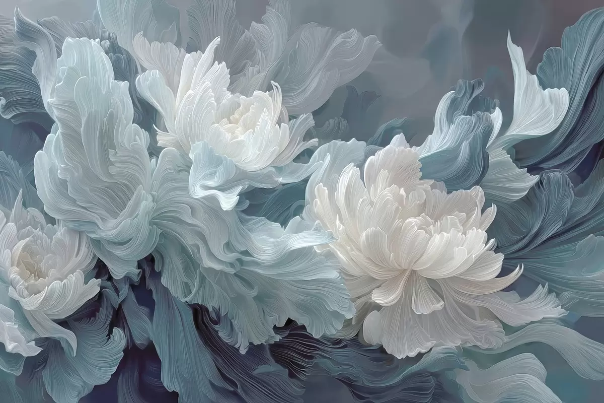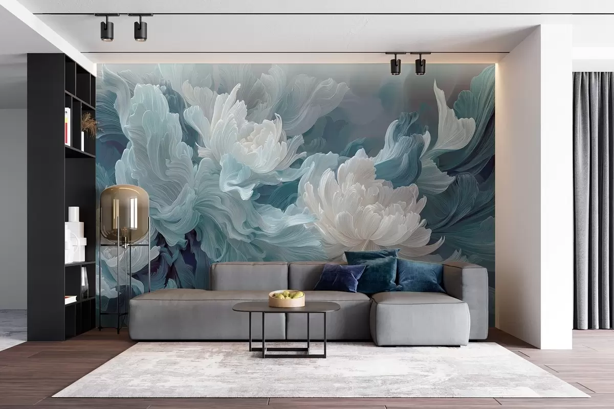 Тапете за зид Апстрактно цвеће у плавим и тиркизним нијансама бр. w09452