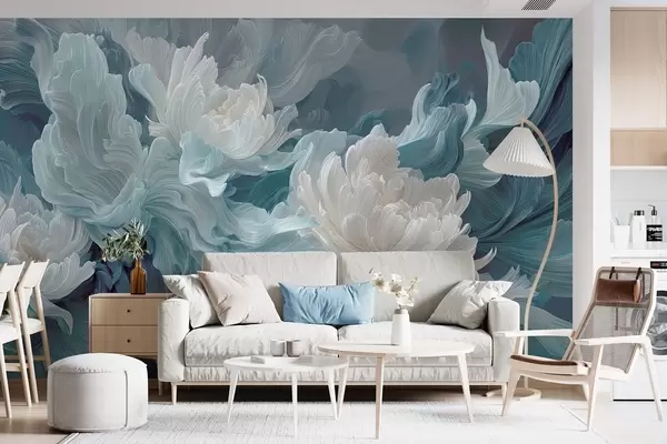 Тапете за зид Апстрактно цвеће у плавим и тиркизним нијансама бр. w09452