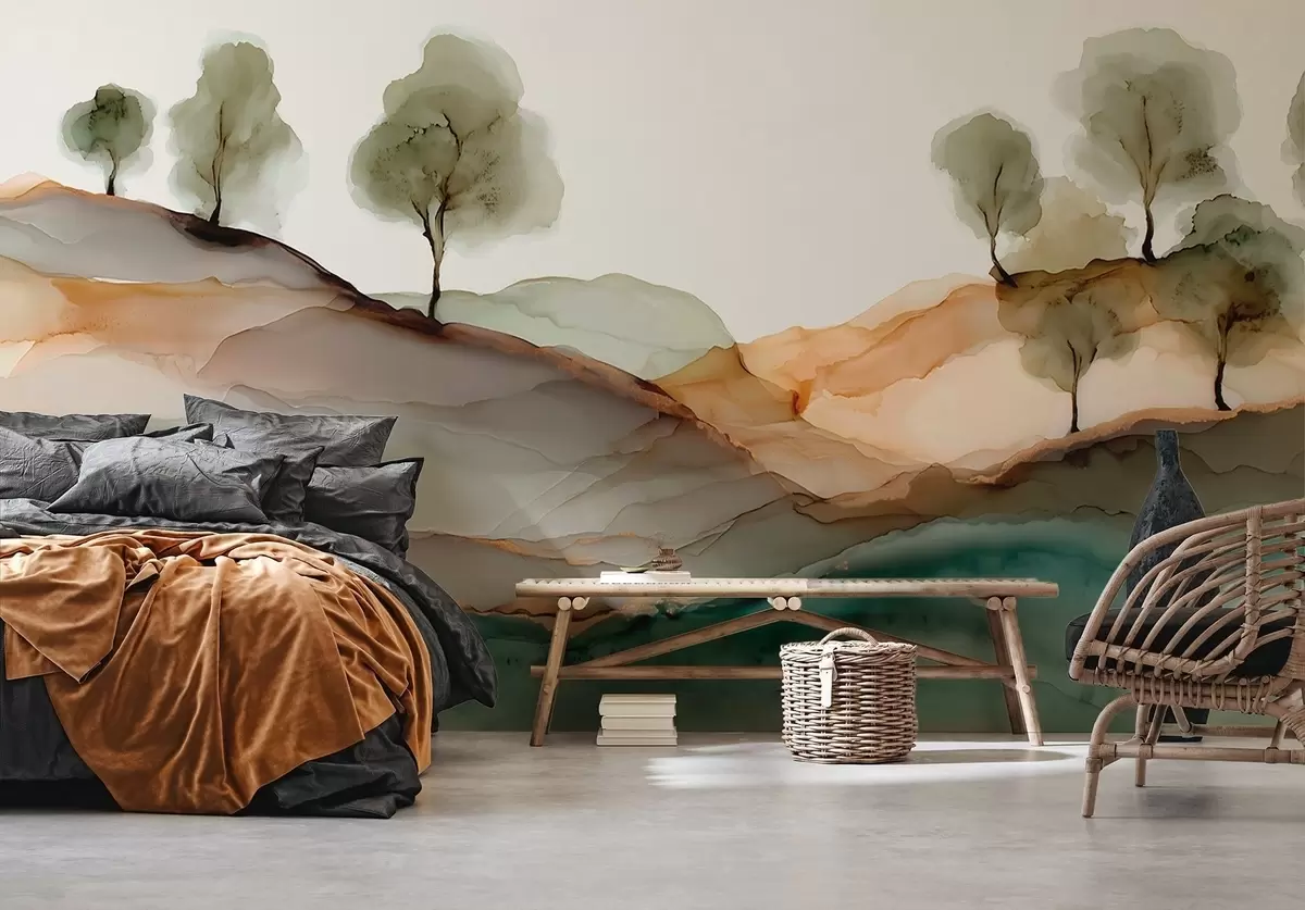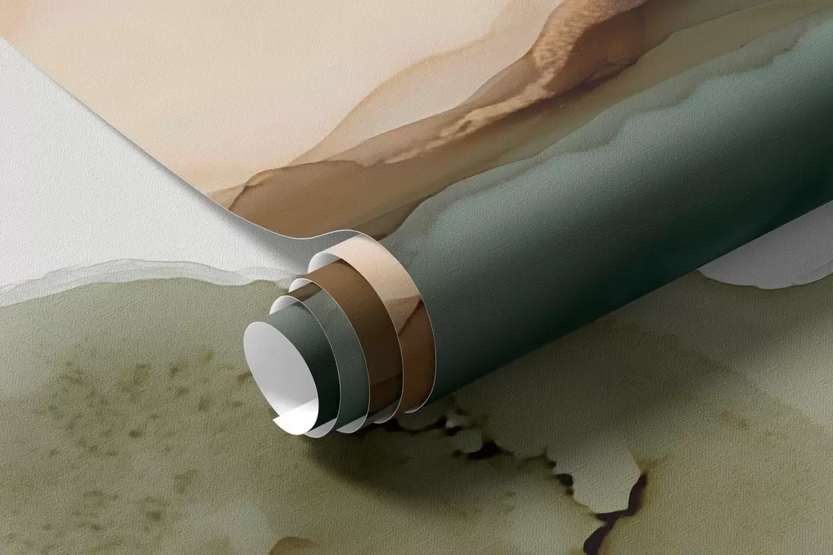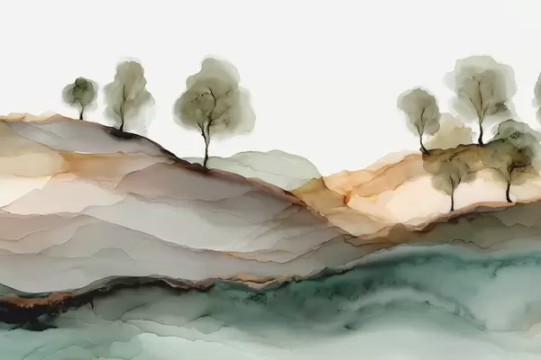 Тапете за зид Апстрактни пејзаж у стилу алкохолног мастила — брда и дрвеће у пастелним тоновима бр. w09457