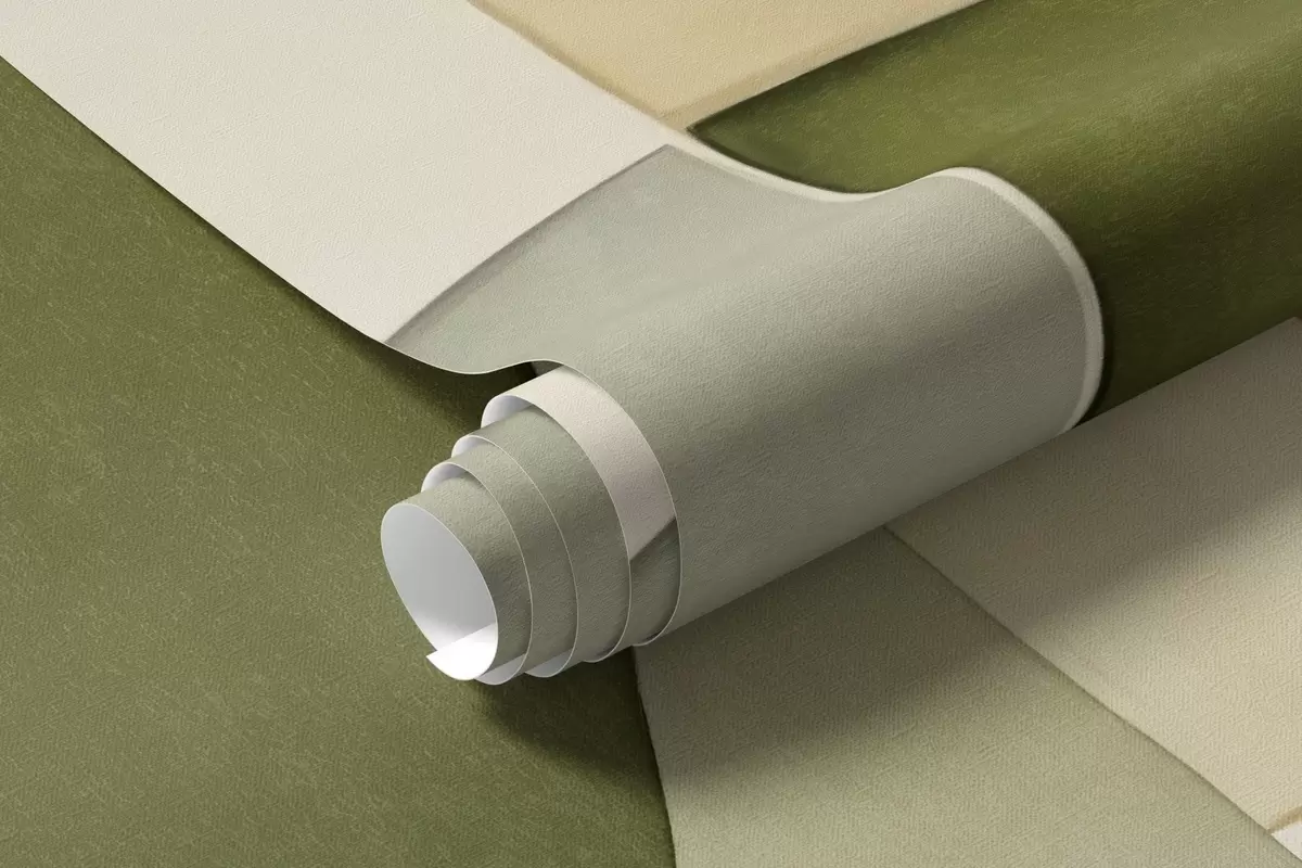Тапете за зид Апстрактни текстурирани облици у нијансама зелене и жуте, пригушени тонови, минималистичка композиција, неутрална позадина бр. w09467